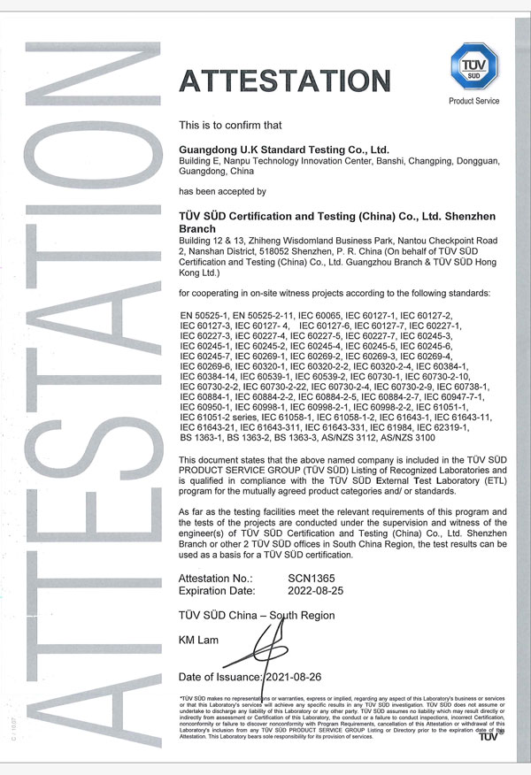 廣東優(yōu)科檢測(cè)認(rèn)證有限公司(簡(jiǎn)稱:UKK)成?于2007年,是國(guó)內(nèi)專業(yè)的汽車整車及零部件、電子元器件第三方檢測(cè)實(shí)驗(yàn)室,國(guó)家級(jí)中小企業(yè)公共(技術(shù))服務(wù)示范平臺(tái),獲得了國(guó)家?新技術(shù)企業(yè)、廣東省專精特新中小企業(yè)、市級(jí)工程技術(shù)研發(fā)中心等榮譽(yù)稱號(hào)。 More